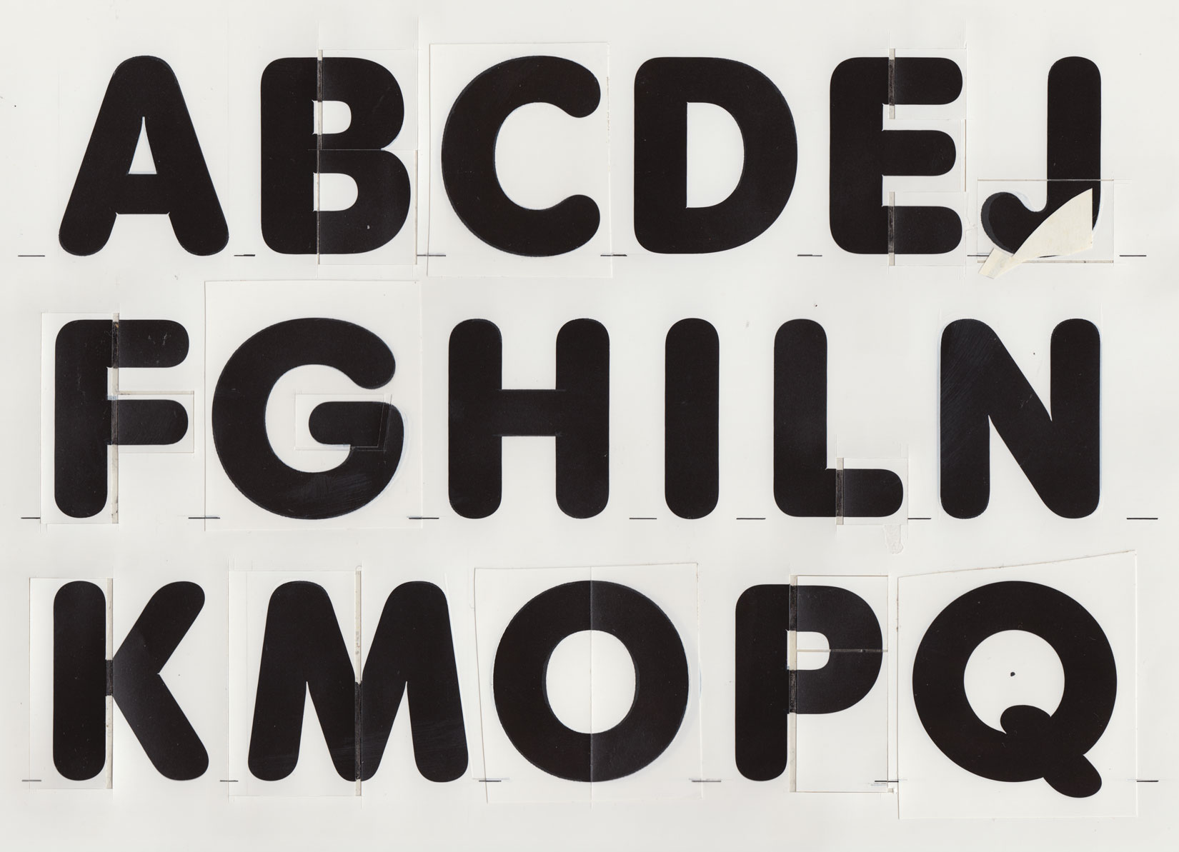 Originale Zeichnung von 1974. Die Schrift hieß zunächst Futuranea und wurde in 18 Schriftschnitten veröffentlich. Später überarbeitete Georg Salden die Schrift und gab ihr den Namen Turbo.