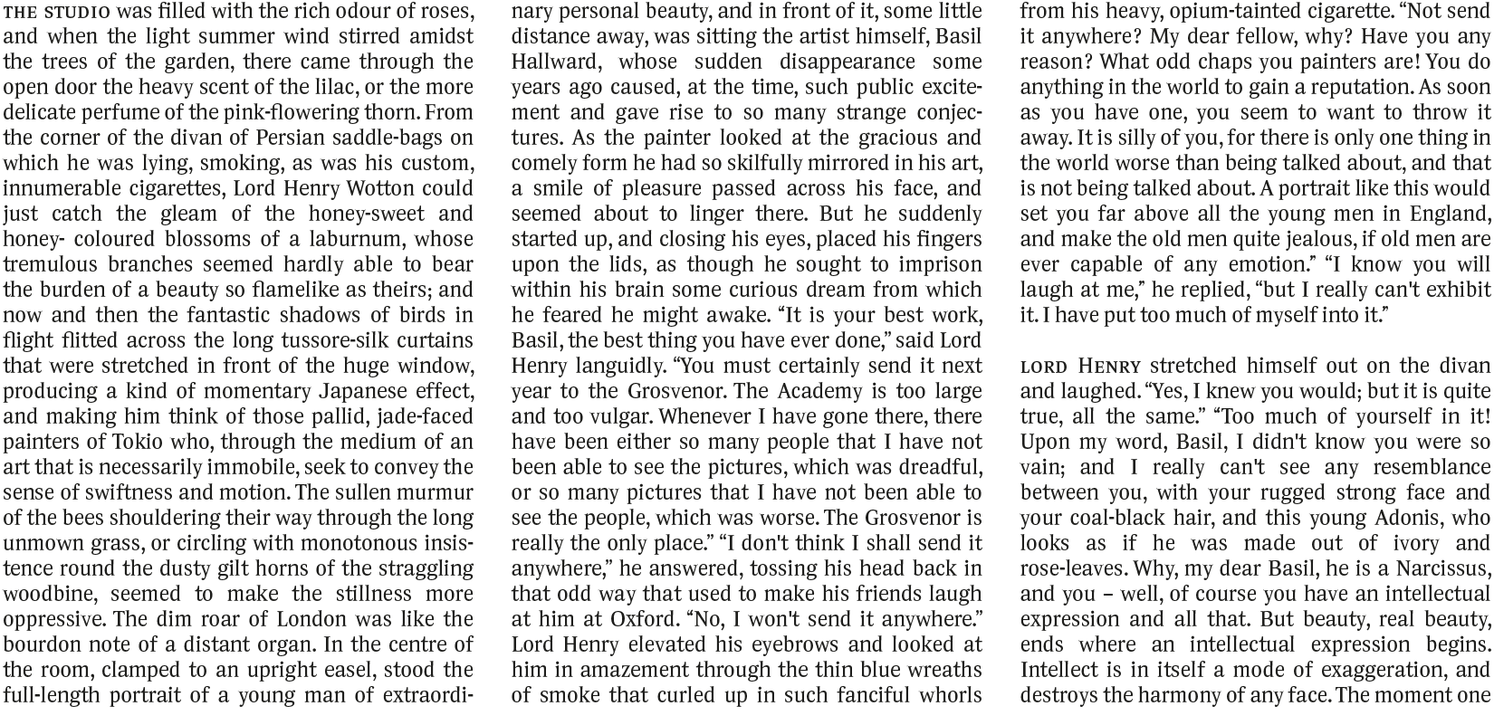 Eine große x-Höhe und kompakte Buchstabenformen machen Votum besonders geeignet für umfangreichen Text in kleinen Schriftgrößen und schmalen Spalten.
